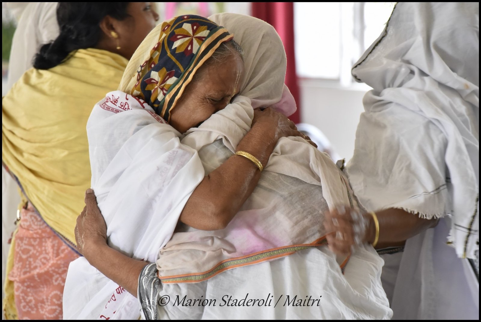 Maitri recueille plus d’une centaine de veuves, leur offre un toit dans des conditions descentes, un repas par jour et quelques fournitures. Le premier ashram compte 70 veuves âgées. Un second est en construction et pour l’instant il y a déjà 40 veuves plus ou moins vieilles qui y vivent, et 70 qui viennent de l’extérieur juste pour un repas ou pour y trouver de l’aide.