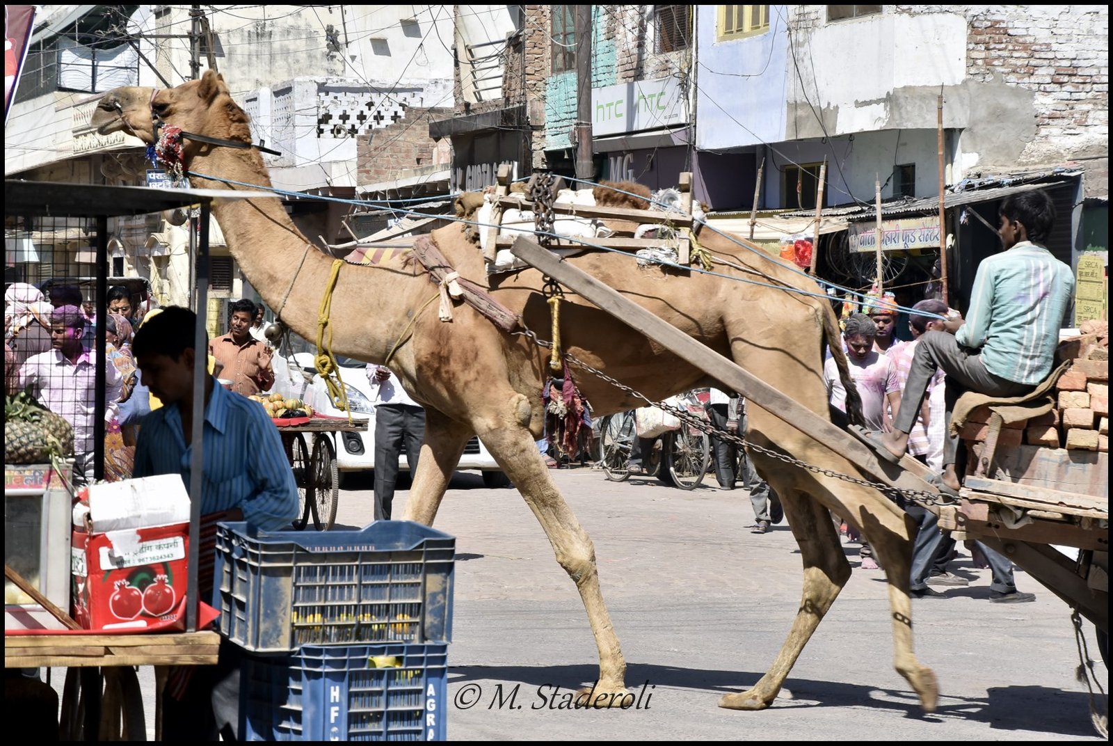 Il faisait chaud, des centaines de mouches tournaient partout et parfois nous recevions des relents nauséabonds en pleine figure. Le temps nous a paru long… S’ajoute à ça la misère humaine. Des enfants dans un état terrible, les vêtements sales et déchirés, la peau maculée de crasse avec une odeur qu’on peut parfois difficilement supporter viennent tendre la main et vous implorent de longues secondes les yeux dans les yeux… Ils ne sont pas nés au bon endroits et leur vie promet d’être « longue »… On voit aussi passer des estropiés qui rampent au sol, bref des moments vraiment pénibles. Pourtant autour il y a du monde, des gens bien habillés, des saris colorés, des voyageurs, des gens qui sont heureux, mais à ce moment là on ne les voient plus vraiment. Il faut sans cesse dire « non » avec un sentiment coupable, qui même s’il est inutile reste présent. Derrière tout ça il y a souvent des réseaux mafieux, et donner de l’argent à un gamin morveux voudra dire enrichir un sale mec qui profite d’eux. Et puis même. Donner 1 roupie, ou 10, ou 100 ou même 1000 à ce gosse ne changera malheureusement pas grand chose à sa condition et à celle des autres autour…