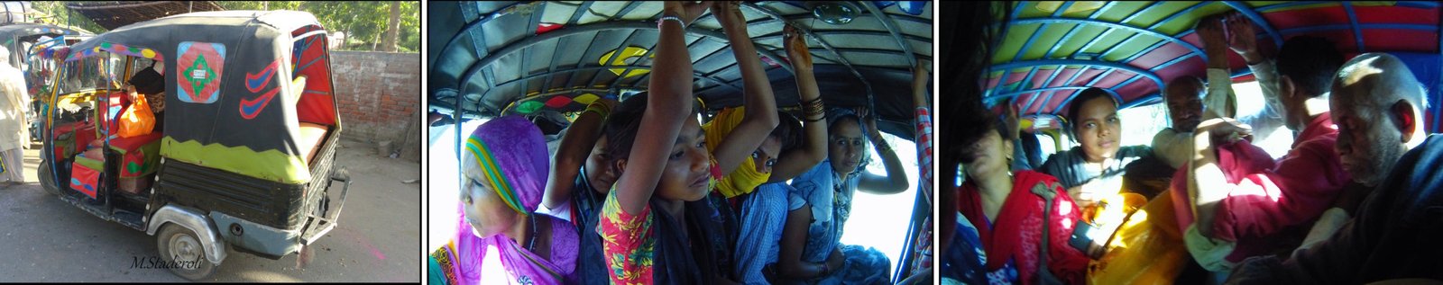 A 9H nous sommes partis avec Yadosha pour l’autre ashram qui se trouve dans la ville de Radhakund à 25km. Pour y aller nous avons du prendre plusieurs rickshaw et voyager pendant environ 1H30. Cela nous a offert quelques expériences bien typiques comme par exemple être entassés à vingts personnes sur ces petits engins ! Si je vous jure c’est possible !! En Inde rien n’est impossible ! Secoués et serrés comme des sardines et recevant des nuages de poussière en pleine figure, mmmhh ça réveille !