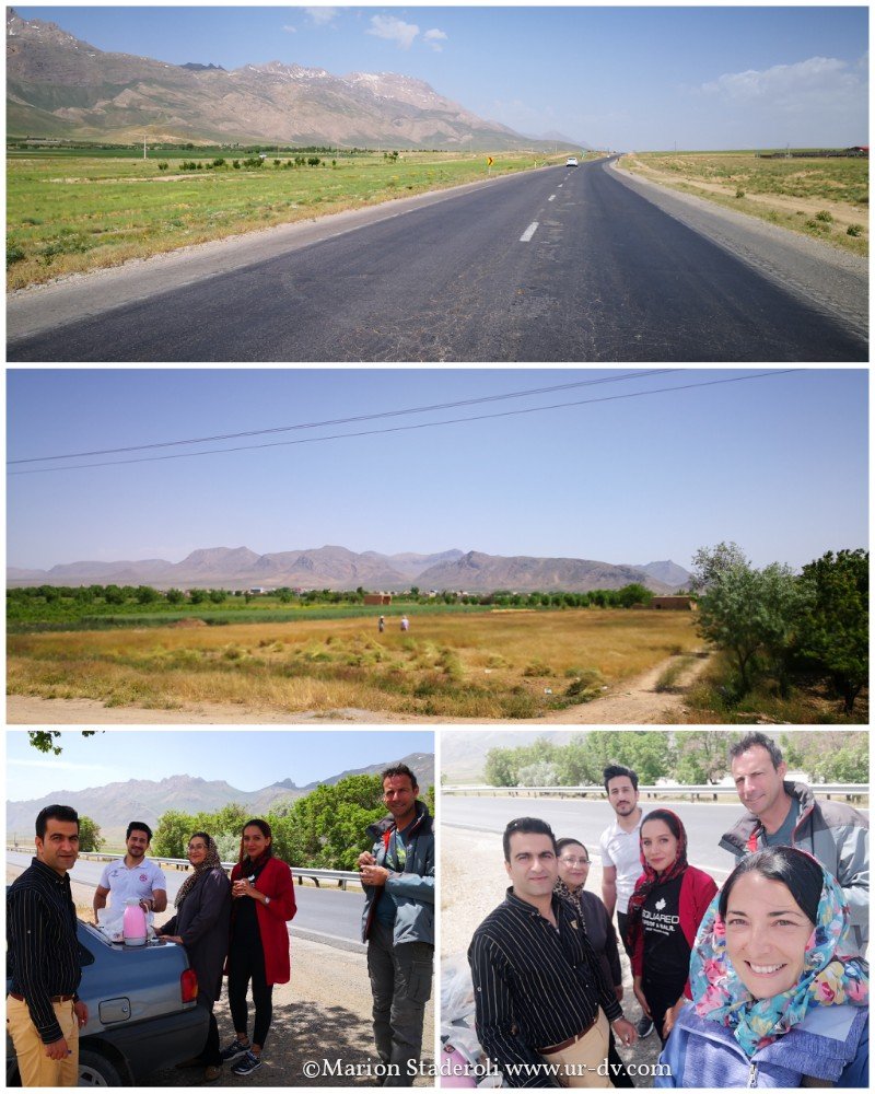 Comme toujours en Iran des moments simples deviennent de vrais événements. En route, nous nous garons sur le bas-côté pour une brève pause. Une famille se restaure en peu plus loin sur le coffre de la voiture. On entend glousser… On jette un oeil et on nous fait signe de venir boire un thé. Allons-y ! A l aide du traducteur du téléphone on nous pose des questions, puis on me tend l écran, j y lis « nous sommes à votre service, vous êtes très importants pour nous » ! Whaou et re-whaou on se prendrait pour des stars! Ils sont vraiment incroyables… c est … trop! ❤️❤️❤️❤️
