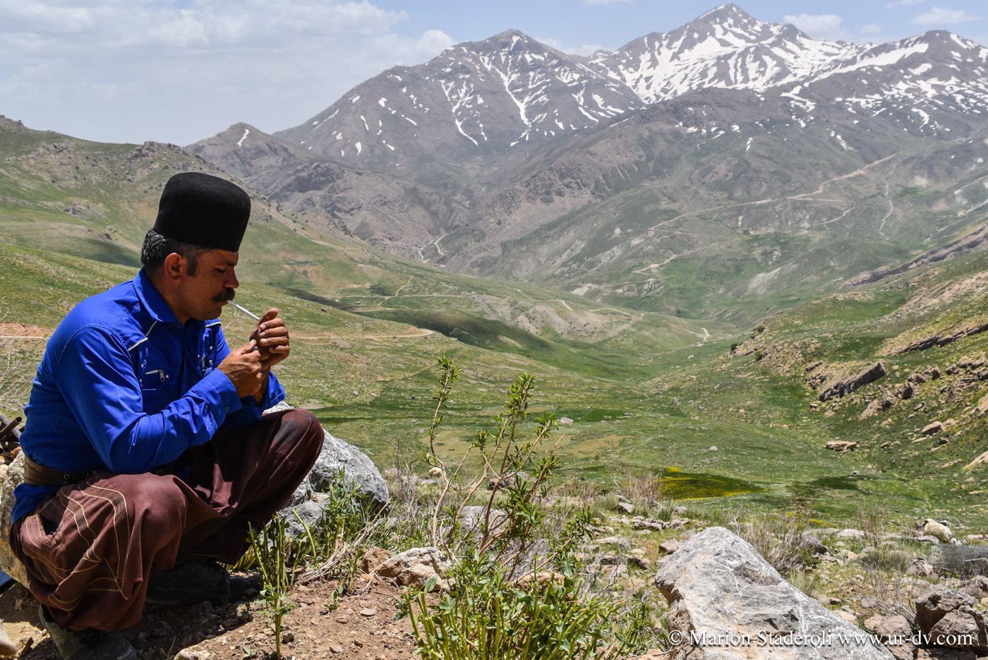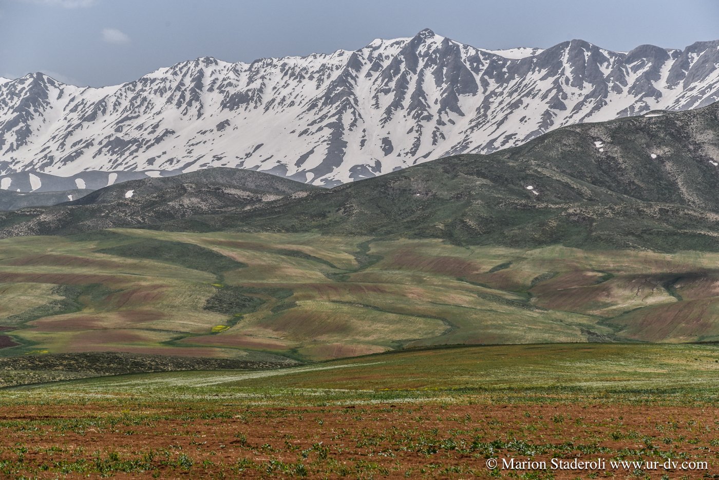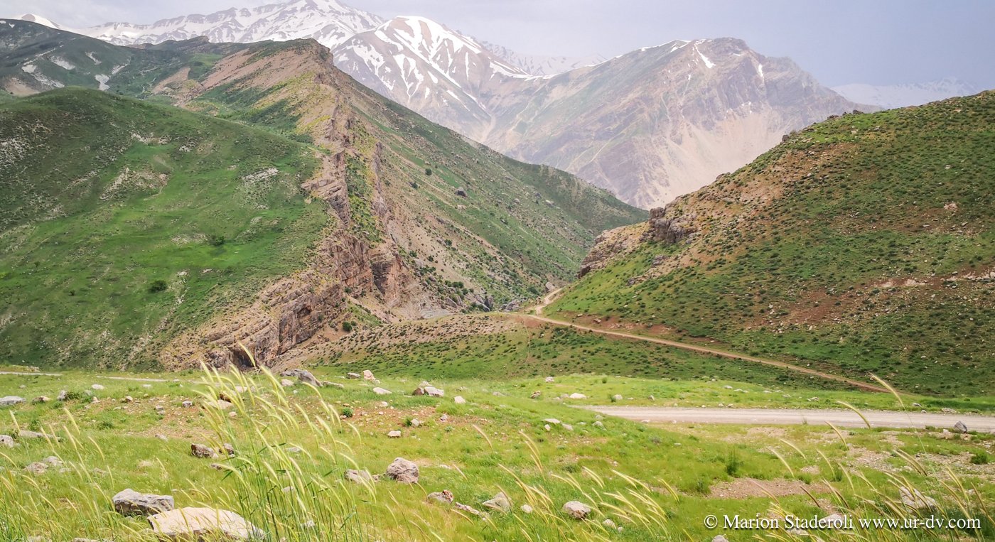 3 petites heures de route et nous voilà dans un autre décor à 2500m d altitude ! En route les paysages sont devenus de plus en plus verts et les montagnes enneigées de la grande chaîne Zagros sont apparues… magnifique…😍 Nous avons l’impression d’être toujours « en bas » car entourés de sommets bien plus hauts.