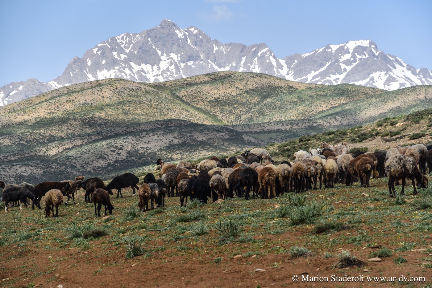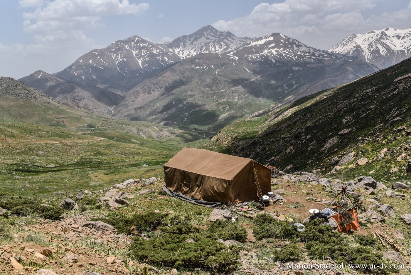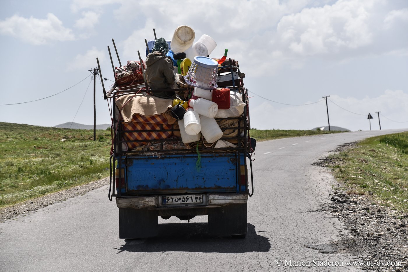 3 petites heures de route et nous voilà dans un autre décor à 2500m d altitude ! En route les paysages sont devenus de plus en plus verts et les montagnes enneigées de la grande chaîne Zagros sont apparues… magnifique…😍 Nous avons l’impression d’être toujours « en bas » car entourés de sommets bien plus hauts.