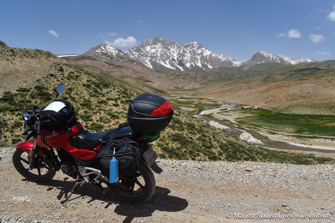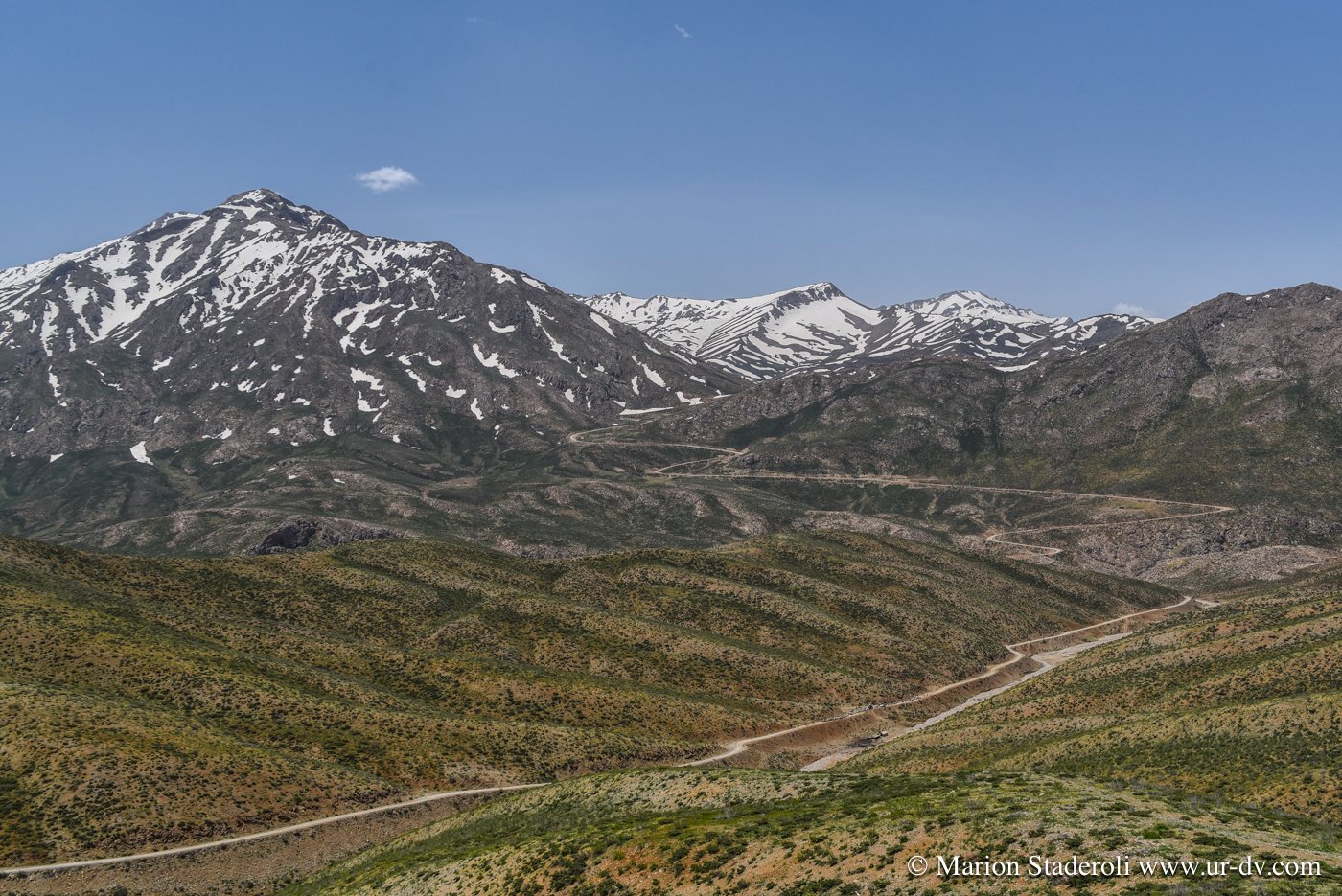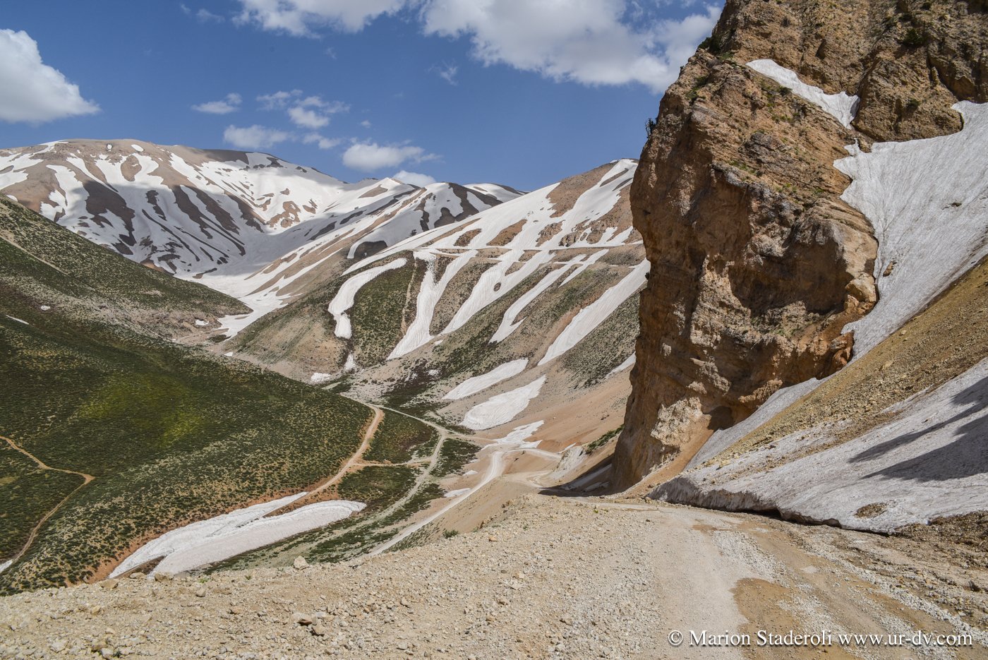 La route principale ou plutôt la piste pour y arriver reste coupée les 2 tiers de l année à cause de la neige présente sur les cols à franchir. Normalement mi mai elle doit être ouverte mais il se trouve que ce n est pas le cas 🤨! Heureusement j ai pu avoir cette info en début de voyage grâce à Mojtaba (chez qui nous étions à Varzaneh) car il a un contact là bas. Depuis, nous ne cessons de modifier notre itinéraire pour repousser le moment d y monter et espérer que la situation s arrangera ! Le problème c est que c est maintenant ou jamais et c est toujours fermé… Par chance on vient de nous indiquer une route alternative, ce sera plus long, mais tant pis, nous irons ! 😁