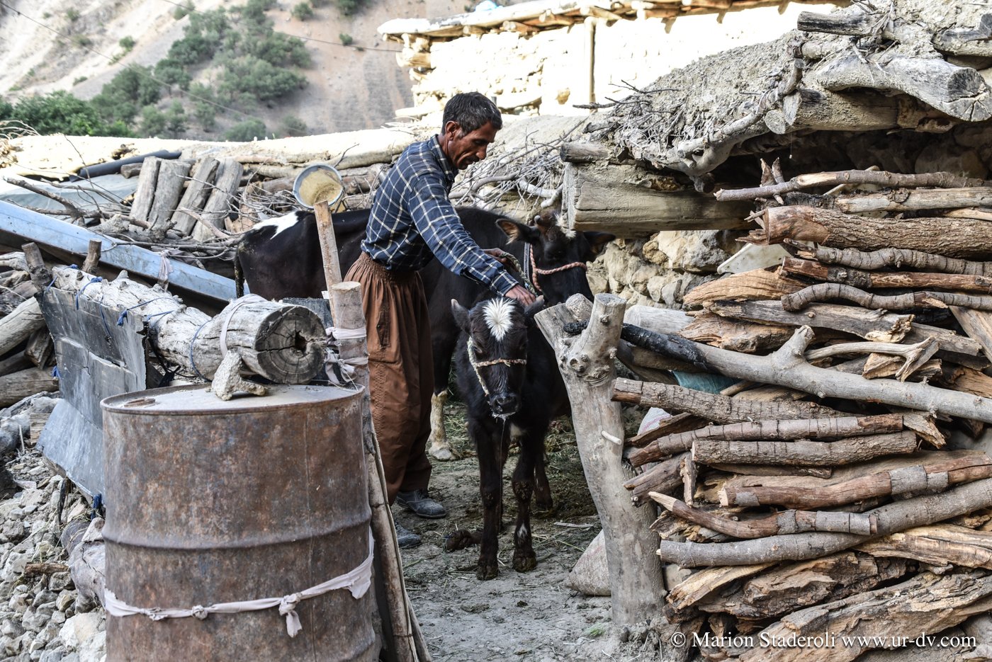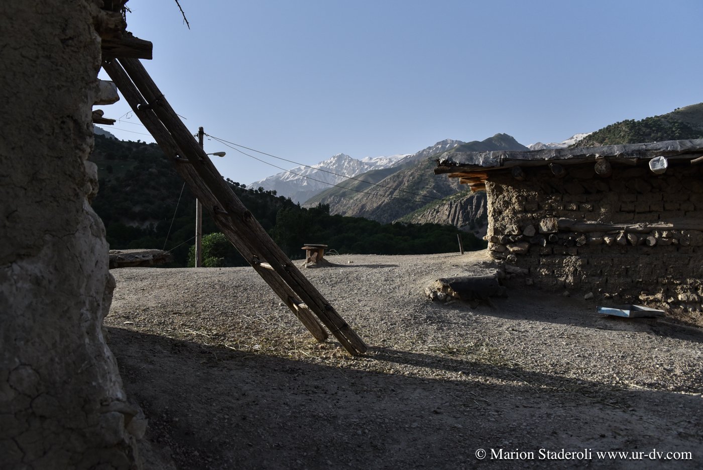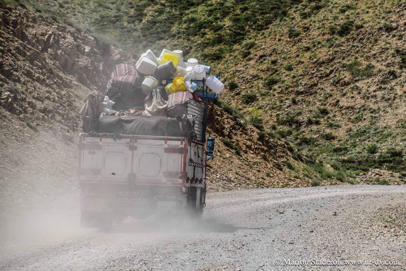 La nuit fut très difficile pour moi, la tension ne me quitte pas car je pense déjà au lendemain et à la route retour. J’ai l’impression comme jamais je n’ai eue d’être au bout du monde et la sensation d’être perdue que j’ai ressenti sur le passage le plus dur me revient sans cesse. Nous avons franchi une dizaine de cols, c’est incroyable comme en à peine une centaine de kilomètres de route (et donc bien moins à vol d’oiseau!) nous sommes loin ! Les images de la journée défilent dans ma tête, les heures tournent et je n’arrive presque pas à fermer l’œil. Le matin, forcément encore plus fatiguée, je me sens angoissée. Je n’y peux rien, je ne pense qu’à une chose, c’est rentrer et vite ! Pourtant nous aurions pu re-tenter de franchir le dernier col, mais je n’y crois plus, je me dis que ce que nous avons vécu là est déjà beaucoup, et je ne peux plus supporter ce stress. Avec le recul je sais que c’était surtout dû à la fatigue, le manque de sommeil me fait perdre le nord, je le sais, je me connais et pourtant c’est dur à contrôler, quel dommage…. Nous prenons un bon petit déjeuner fait de « pain » (galettes dont le goût me rappelle vraiment les crêpes bretonnes de sarrasin) trempées dans du lait de chèvre tout frais, passons un peu de temps dans le village à observer les habitants, échangeons encore un peu avec nos hôtes, et puis les quittons. J’ai la gorge serrée de savoir que nous ne les reverrons certainement jamais… Nous ne les connaissons que depuis quelques heures mais je ressens pour eux un profond attachement.