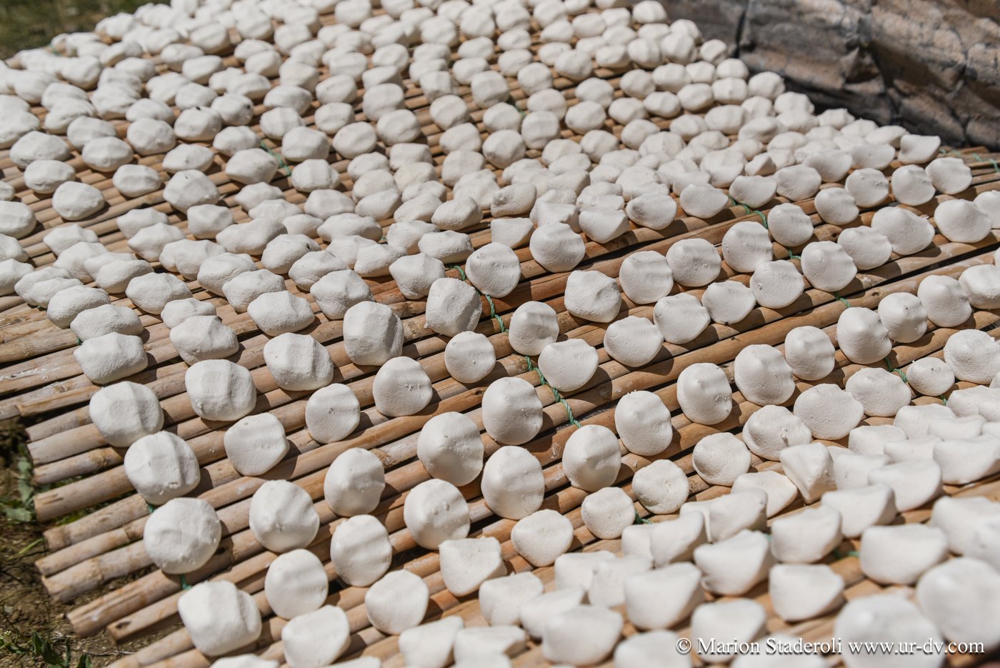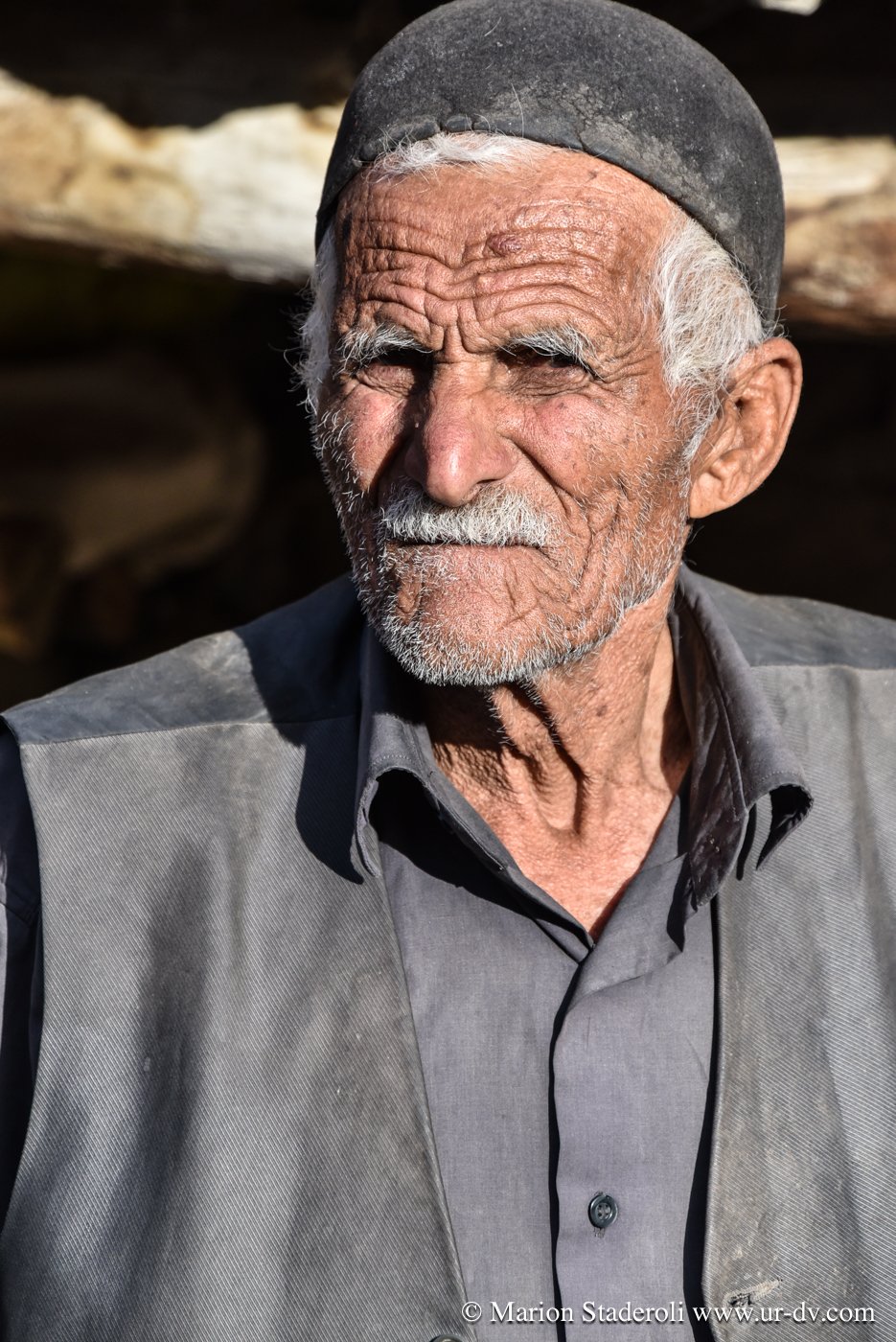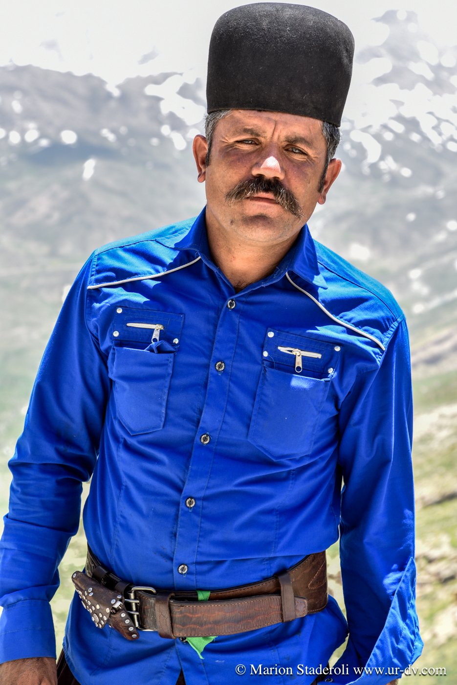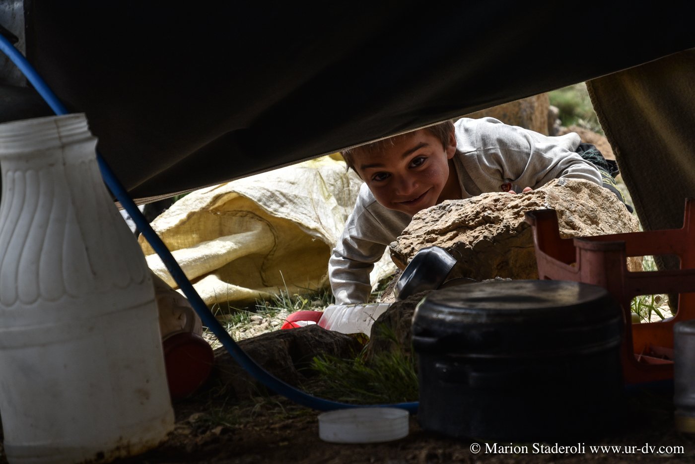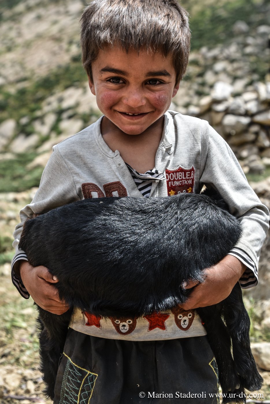 Première rencontre de la journée. Nous nous arrêtons près d’un camp pour faire quelques photos de la vue. Plus loin au-dessus, une jeune fille. Je la salue d’un geste, elle me fait signe d’approcher. Il y a la maman, et ses enfant. Le papa est dans la montagne avec le troupeau. Ils sont tous très beaux, la peau bronzée et abîmée par le soleil et de superbes yeux bleu-vert qui ressortent comme des perles. On nous offre du thé, du lait, on nous montre comment brasser du yaourt dans une outre fixée sur un trépieds. La dame veut même nous en donner plusieurs litres dans un bidon! Fabuleux moments…