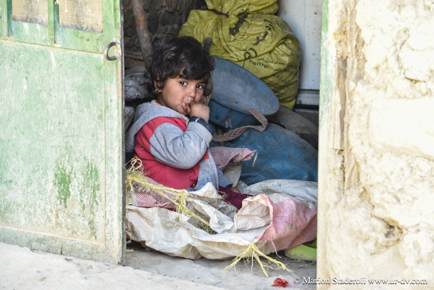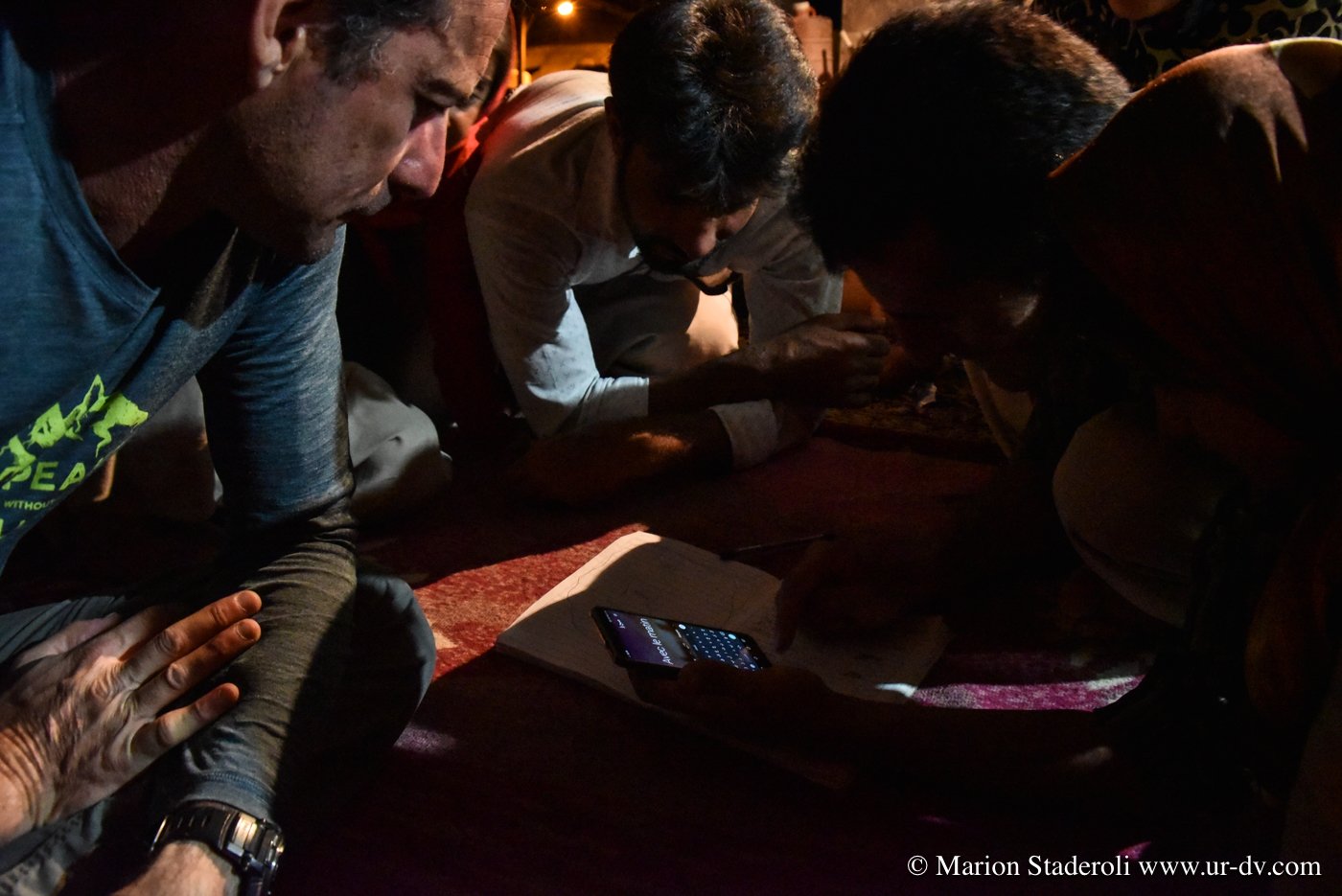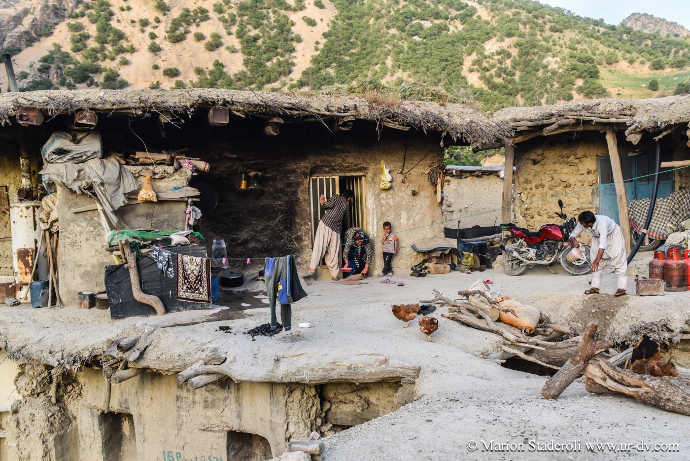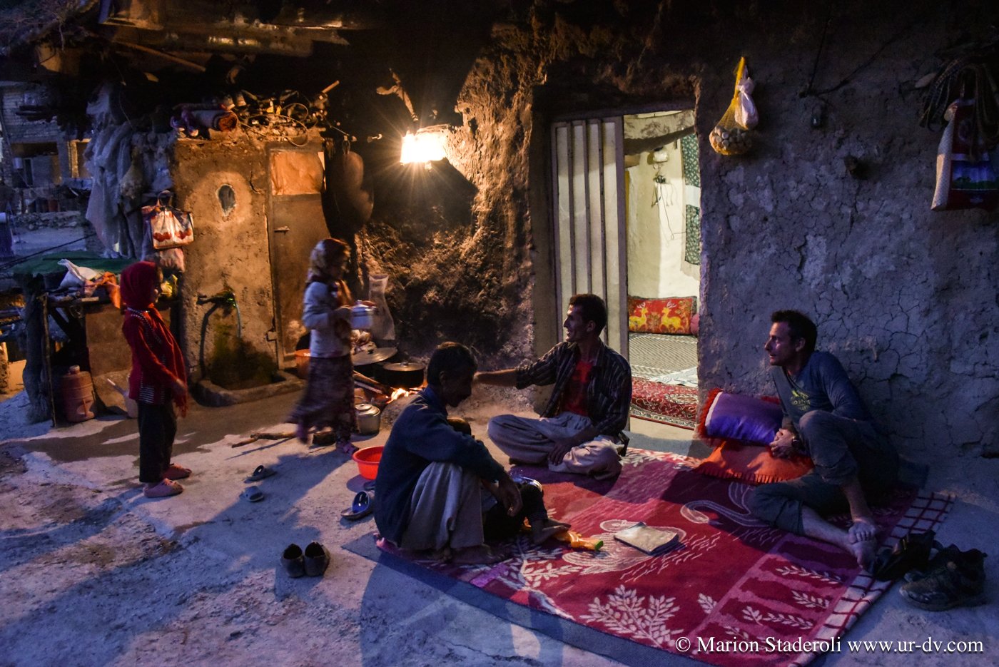 Même si nous sommes éreintés, couverts de poussières, affamés et vidés, et que je n’ai qu’une envie c’est de me laisser tomber au sol et de ne plus bouger, nous ne nous attardons pas, nous avons la chance de découvrir la vie locale de ce village typique, c’est une chance qu’il ne faut pas gâcher. Ces gens sont si chaleureux qu’il faut leur faire honneur. C’est ainsi que nous passons la soirée avec eux, devant leur maison. Ils ne parlent pas un mot d’anglais, mais nous arrivons à communiquer par gestes et avec quelques traductions sur le téléphone. Nous découvrons leur vie, une vie très modeste dans les montagnes, ce sont des nomades sédentarisés. Nous sommes accueillis comme si nous étions des amis. Ils ont l’électricité mais les maisons sont vétustes, faites en terre et en roche, empilées les unes sur les autres, pour beaucoup délabrées. Un petit robinet à l’extérieur, il semble n’y avoir qu’un seul toilette pour le village. Ils travaillent en famille et semblent néanmoins tous heureux, très « relax », il émane d’eux de la sérénité. Je ressens un profond sentiment de gratitude, et un élan d’amour envers ces inconnus. Ce soir ils sont notre famille, à ce moment là, pour moi, ils sont… tout !