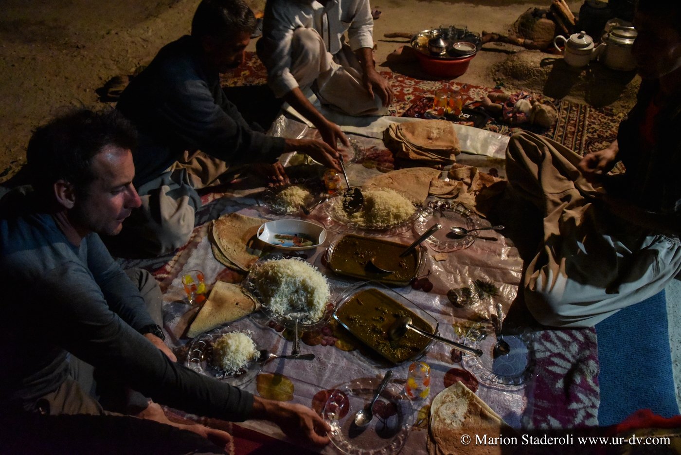 Nous décidons ainsi de retourner quelques kilomètres en arrière pour rallier le dernier village rencontré, afin d’y trouver refuge pour la nuit. Heureusement, dans un pays tel que l’Iran, et encore plus dans un lieu si isolé, nous ne doutons à aucun moment de pouvoir y trouver hospitalité.