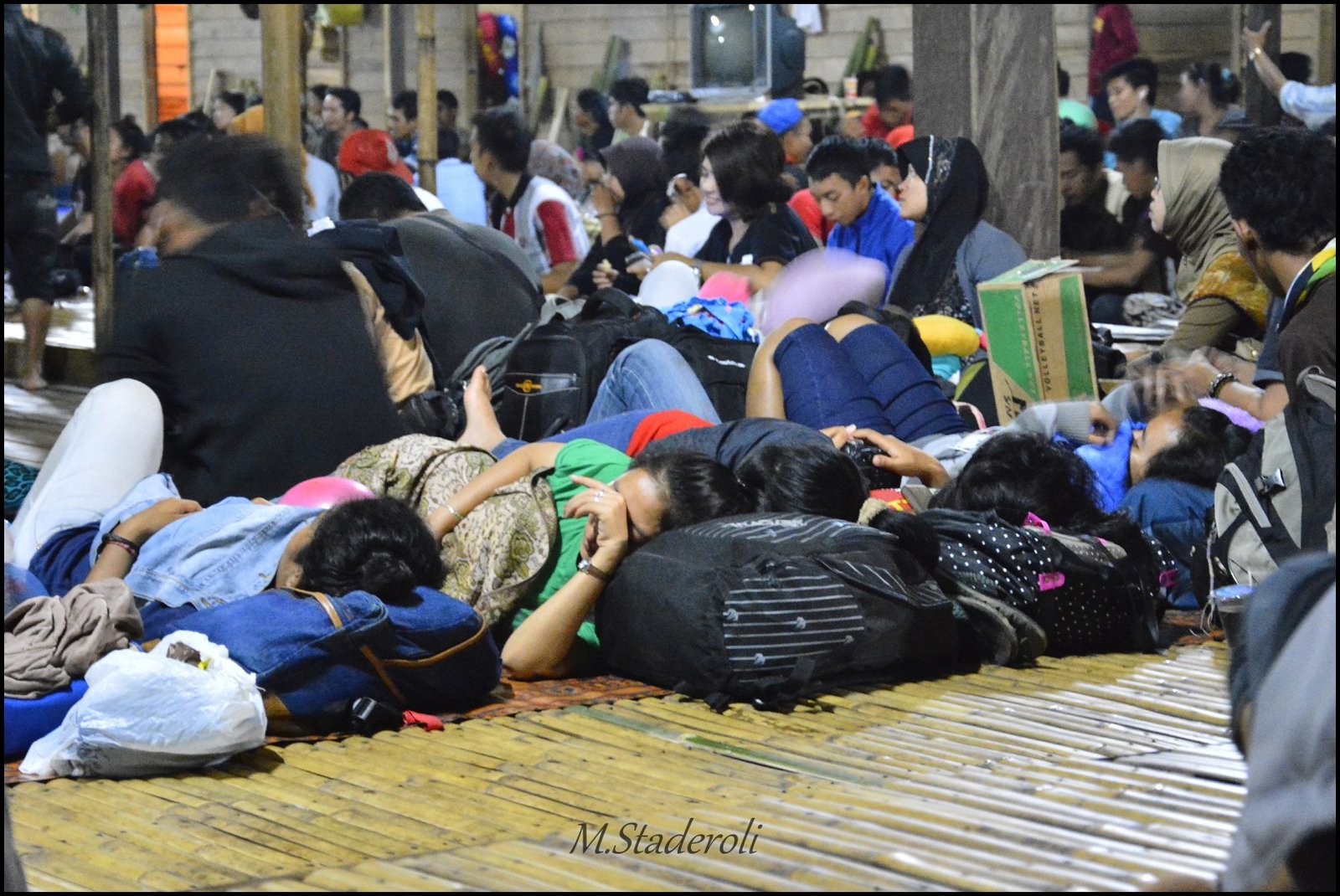 Nous présumions que cette affluence était pour ce fameux événement du soir . Nous ne savions pas vraiment quand partir ni comment nous « présenter » là bas… Nous voyant hésitants le proprio de l’hôtel a fini par dire à un groupe de 5 ou 6 garçons de 20 à 30 de nous emmener avec eux. Ils se trouve que nous sommes tombés sur une sorte de club photos de Kandangan! Ils sont super sympas, un ou deux parlent un peu anglais et nous avons passé la soirée ensemble assis au même endroit.