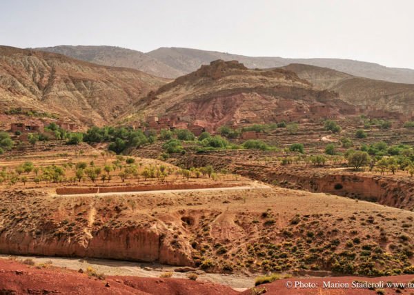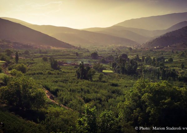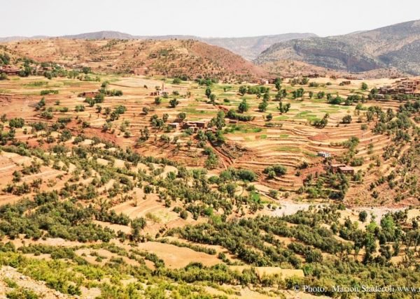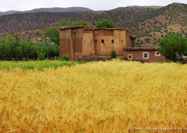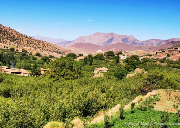 Ait Bouguemez, c'est un ensemble de villages en terre, au coeur d'une vallée, à 2000m d'altitude, qui, alimentée par des sources est très verte. Des champs de céréales et de fruitiers partout, des fleurs de montagne, et une population qui vit comme coupée du monde (d’ailleurs pas de wifi et très peu voire pas de réseau selon les endroits, prévoyez plutôt une sim Maroc Telecom les autres ne passent pas du tout).