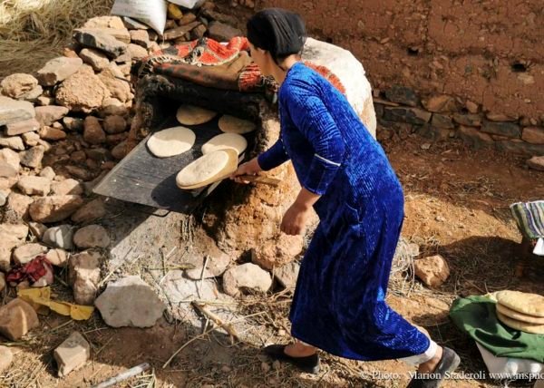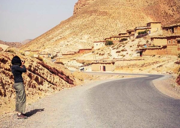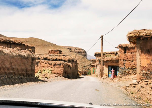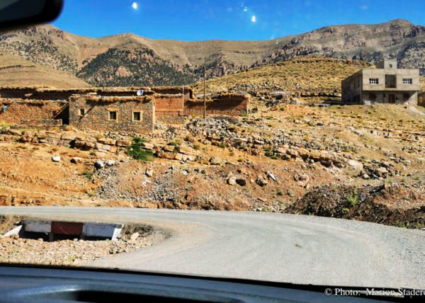 Les gens, peut-être trop surpris de nous voir là, seuls sans guide, trop timides, ou alors incommodés (on ne le saura jamais vraiment) ne nous prêtaient pas toujours attention. On souriait, et on disait toujours "bonjour" (bien polis quoi !) mais ce n'était pas forcément payant. Les hommes en général étaient davantage souriants (comme souvent en fait, leur vie est sûrement plus facile que celle des femmes, ce qui les met dans de meilleures conditions haha). Bref, peu de rencontres qui dépassent les quelques secondes, sauf cette fois où nous étions avec Saïd, et où il s'est arrêté discuter devant une maison. Il y avait de la musique, des tambours et du bruit, un mariage nous a-t-il dit. Très certainement que les personnes lui demandaient ce que nous faisions, et une jeune et jolie jeune femme, seule à parler anglais (elle étudiait normalement en ville) m'a conviée à entrer voir. Aussitôt on m'a assise dans la salle des femmes, près de la mariée, dans une pièce rose bonbon, chaude et exiguë, et on m'a priée de manger ! J'ai pu faire quelques photos (peu et très vite, car au départ plusieurs femmes faisaient signe "non" mais la jeune fille a insisté pour que j'en fasse). J'y suis restée une vingtaine de minutes, puis j'ai réussi à prendre congé (alors qu'on me fourrait de nouveau un morceau de poulet dans la main), Antony et Lou m’attendaient dehors ne sachant pas ce que je faisais. On nous a alors proposé de tous entrer, mais vu la taille du lieu (j'avais vraiment eu du mal à mettre un pied devant l'autre !), Lou toujours craintive et la chaleur dedans, nous n'y sommes pas restés. Enfin voilà c'était tout de même un moment à vivre et qui nous a montré que la barrière de la langue et de la culture peut parfois freiner la rencontre, et comme toujours en étant accompagné de locaux ça change tout (ce que nous sommes rarement puisque nous ne prenons pas de guide, oui, on aime compliquer les choses !).Nous avons emprunté plusieurs fois la route menant à Tabant, juste pour le plaisir des yeux et faire des photos. Cela prend environ 20 à 30mn (15km) pour rallier le village, et la vue est vraiment belle partout. On peut faire des poses pour voir les différents petits villages. Nous avons remarqué immédiatement les lieux de passage de trek, car les femmes sortent vite proposer des tapis à vendre lorsqu'elle voient un touriste arriver!