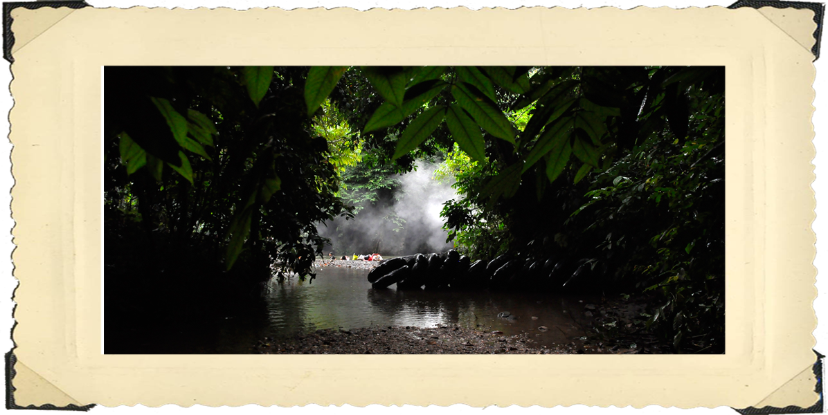 A part ça à Tangkahan on peut se baigner dans la rivière, sous une cascade ou dans une source d’eau chaude ; L’endroit est idéal pour se reposer mais on peut aussi faire des trek en forêt (de 2H à 2 jours). Pour trouver la cascade et la source il faut aller au « visitor center », prendre l’escalier qui descend derrière, puis traverser la rivière sur le « radeau » (vraiment marrant comme technique) et marcher en direction de l’autre bras de rivière après le « Méga Inn ». Le « Maga Inn » est une des autres guesthouses de Tangkahan. Elle avait l’air pas mal également mais nous avons opté pour le « Greenlodge » qui est plus isolé, offre une vue superbe et se trouve devant l’enclos des éléphants. « Greenlodge » est à 1 km environ du « Visitor Center ». Nous n’avons pas regretté notre choix, car c’est vraiment en endroit super, le personnel est adorable (Herman, Haris et les autres sont toujours là pour savoir si nous avons besoin d’aide ou pour jouer un morceau de guitare) et on y mange très très bien. Pour avoir un des quatre bungalows avec vue sur la rivière il faut en fait prendre les plus chers (180000RP soit 13€ avec petit dej) et ça n’a rien à voir avec les autres qui ont la vue sur le jardin. En tout il y a une douzaine de bungalow, et nous avons la chance d’être les seuls clients en ce moment ! Notre terrasse est un havre de paix… Lorsque nous sommes arrivés et que j’ai vu ce plancher suspendu au-dessus de l’eau verte avec tous ces arbres devant j’ai été émerveillée ! En parlant de l’eau verte ; Malheureusement on aura eu l’occasion de l’apprécier uniquement l’après-midi où nous sommes arrivés car à cause de pluies en amont elle est ensuite devenue marron… malheureusement je n’ai pris que très peu de photos. Mais l’eau boueuse donne une autre ambiance on peut dire ! Ca fait plus Indiana Jones ! 🙂